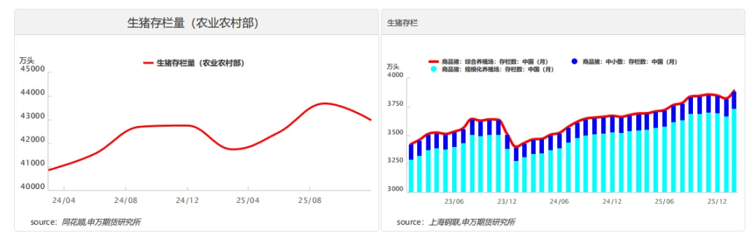 综合估算:两轮2万吨收储大约需要70-76万头110公斤体重的生猪,根据2025年年末,农业农村部公布的生猪存栏为42967万头,本年度收储对应的存栏比重为0.16%——0.17%,占整体供给量相对较低。