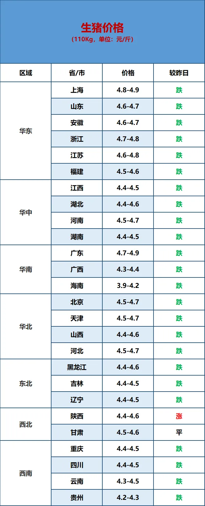 2026.4.4猪价早知道 养羊网 2026-04-03 2026.4.4猪价早知道猪价日评:今天猪价窄幅震荡。中国主流市场出栏外三元、内三元及土杂商品大猪加权日均价较昨日价格下跌,全国生猪出栏加权日均价9.22每公斤,较昨日价格下跌0.84%。仔猪价格下跌、养殖户补栏意愿低迷,需求端受淡季影响偏弱,叠加饲料成本高位、冻猪肉收储政策托底等因素,预计近期猪价或稳中偏弱。声明:此报价仅供参考,不作为买卖依据。 养羊网 2026-04-03 上一篇:4月4日猪价:24省下跌,1省上涨!明天这行情,我只能说三个字 下一篇:【明天猪价】 2026. 04. 04 猪价继续下跌!! 您可能还会对下面的文章感兴趣111: 相关文章 2025年4月13日全国各地生猪价格信息 近期价格更新!!! 2025年4月13日全国各地生猪价格信息 唐山羊苗价格