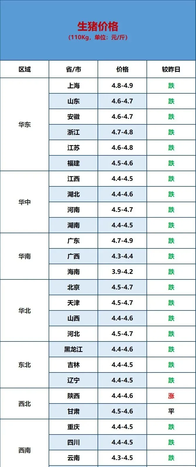 2026.4.4明日最新猪价信息! 养羊网 2026-04-03 2026.4.4明日最新猪价信息!猪价日评:今天猪价窄幅震荡。中国主流市场出栏外三元、内三元及土杂商品大猪加权日均价较昨日价格下跌,全国生猪出栏加权日均价9.22每公斤,较昨日价格下跌0.84%。仔猪价格下跌、养殖户补栏意愿低迷,需求端受淡季影响偏弱,叠加饲料成本高位、冻猪肉收储政策托底等因素,预计近期猪价或稳中偏弱。 养羊网 2026-04-03 上一篇:猪价来了!【明天猪价】4月4日全国猪价涨跌表! 下一篇:4月3日山东鸡蛋价格 您可能还会对下面的文章感兴趣111: 相关文章 在淘宝3块钱买了10颗鸡蛋真的有超乎预料 鸡蛋出场价格稳中偏强 淘汰鸡出场价继续稳定为主 大众报价:2026.03.31全国猪价 鸡蛋涨价,M超市先知?