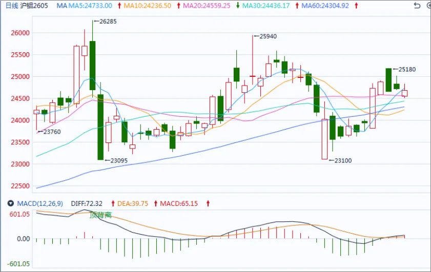 地缘冲突持续扰动市场,铝价中枢明显抬升。短期国内铝价受外盘带动偏强运行,但高库存压力限制涨幅。中长期仍可在回调过程中择机布局多单,同时警惕地缘消息面的反复冲击。沪铝支撑位关注24300元/吨附近(60日均线附近),阻力位于25200-25500元/吨区域。
