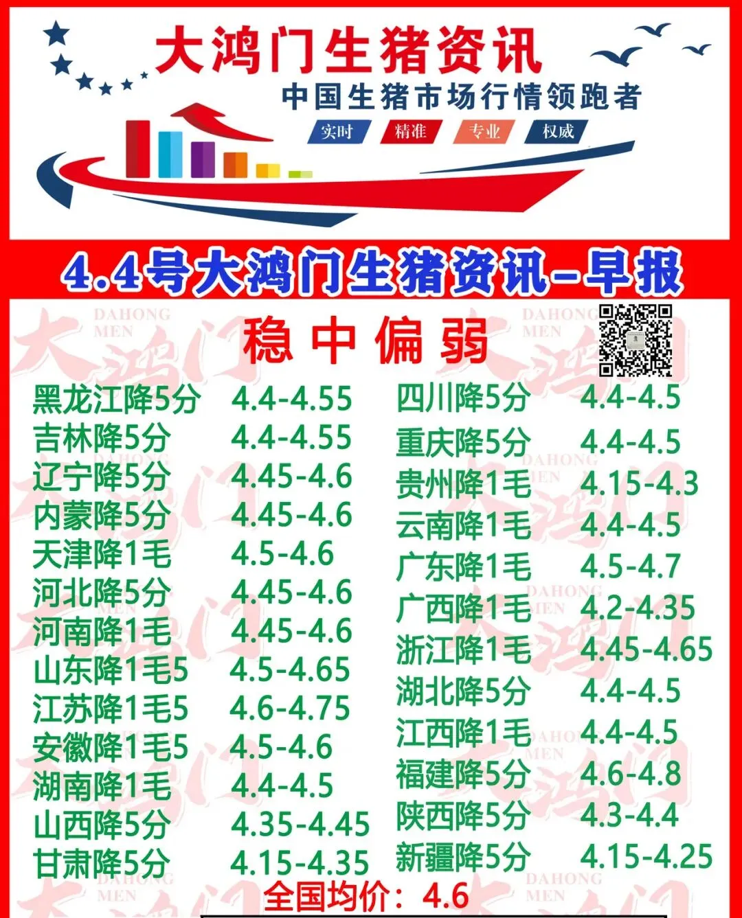 2026年4月4日大鸿门猪价:稳中偏弱(全国均价即将破9)