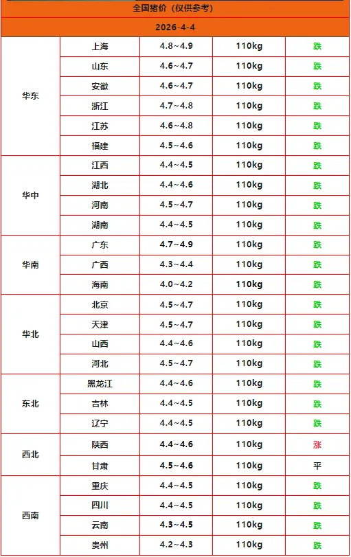 【问猪病加我】2026.4.04-全国猪价:(好猪价.养好猪!)