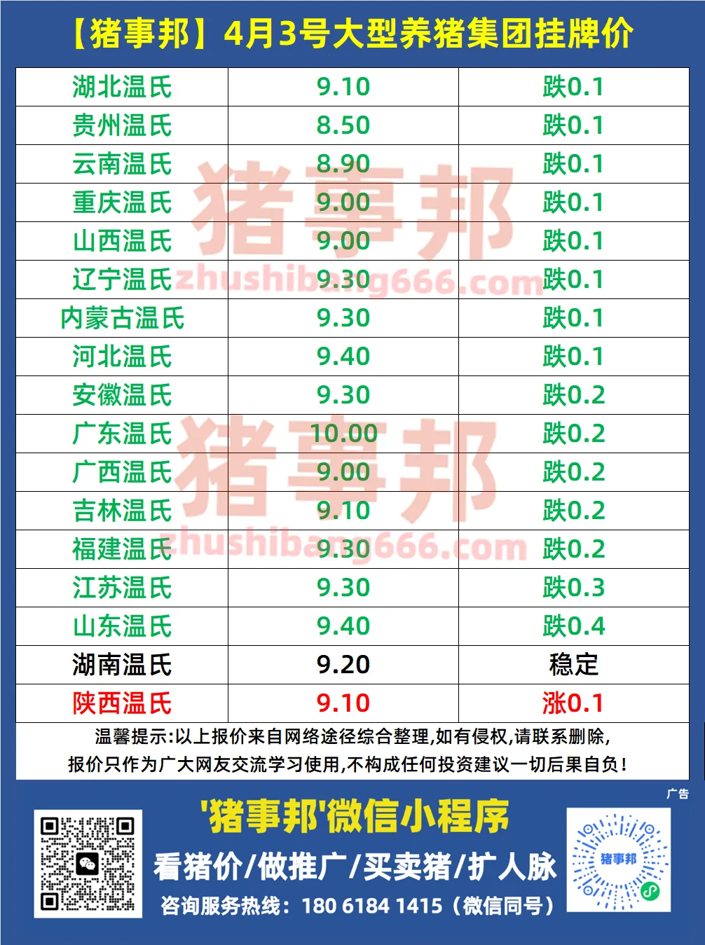 猪事帮|| 4月4日猪价早知道(或继续偏弱运行!)