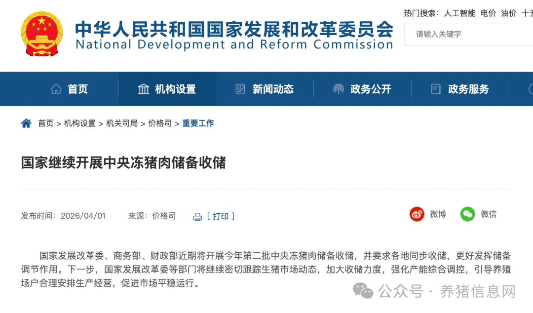 近期,生猪行业的寒意席卷全产业链,“猪肉价格进入过度下跌一级预警区间” 持续霸屏热搜,猪价跌破5元/斤、仔猪低价难售的现状牵动着千万从业者的心。从育肥猪到仔猪市场,亏损潮快速传导,而国家政策托底动作不断,资本市场也迎来微妙变化,生猪行业正站在产能出清与格局重塑的关键节点。面对行业的深度低迷,国家层面的调控 “组合拳” 密集出台,成为市场最坚实的支撑。近期商务部、国家发展改革委、财政部已启动中央储备冻猪肉收储工作,地方也同步加码收储,商务部明确表示将继续密切关注市场行情,会同有关部门做好储备调控,保障市场平稳运行。