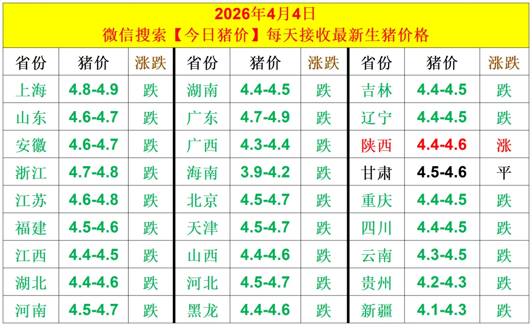 今日猪价|明日猪价2026.4.4(仅作参考)