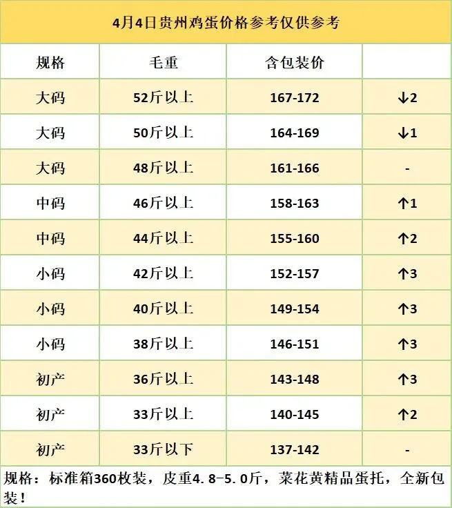 4月4日贵州鸡蛋价格参考