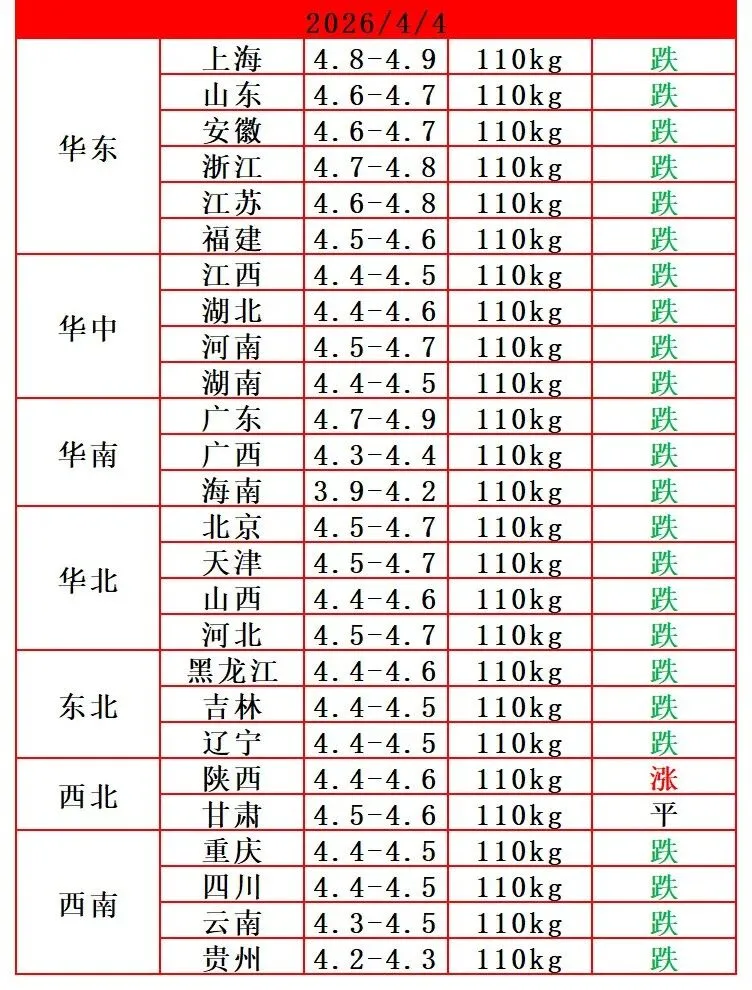 猪价有变,涨跌调整(2026-04-04)