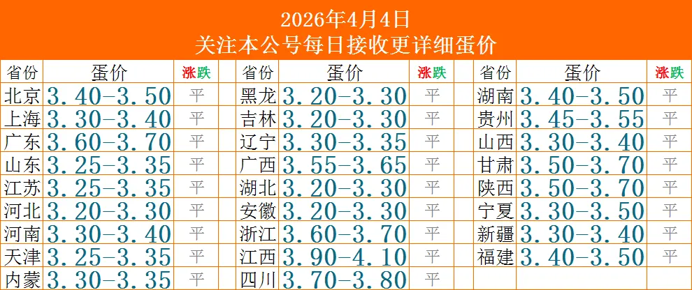 下图为4月4日全国鸡蛋价格表?仅供参考!