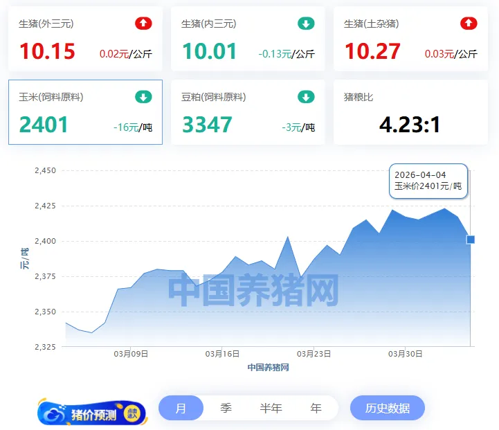 2026年04月04日-中国养猪网 全国玉米价格走势图及涨跌表