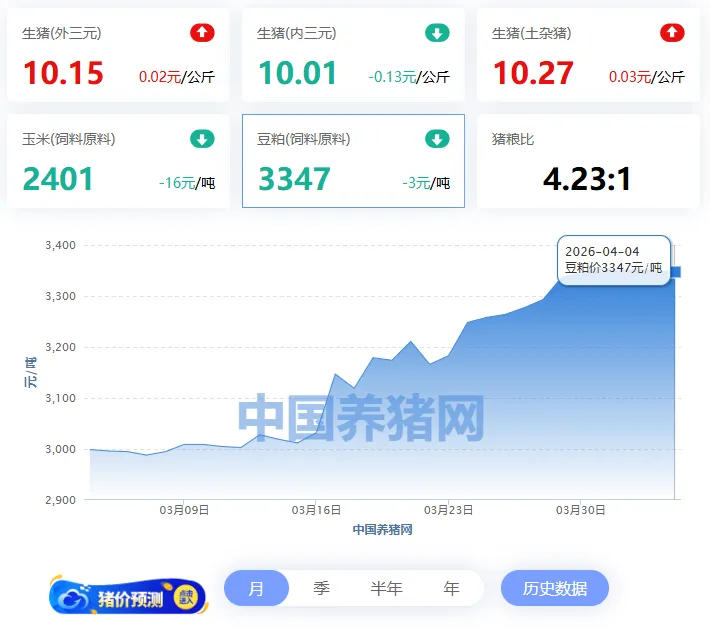 2026年04月04日-中国养猪网 全国豆粕价格走势图及涨跌表