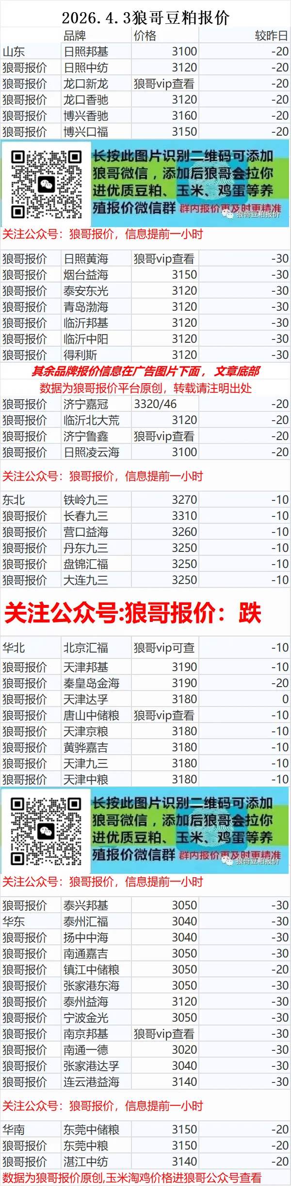 狼哥明日(4.5)鸡蛋价格预测,文末有豆粕下午报价
