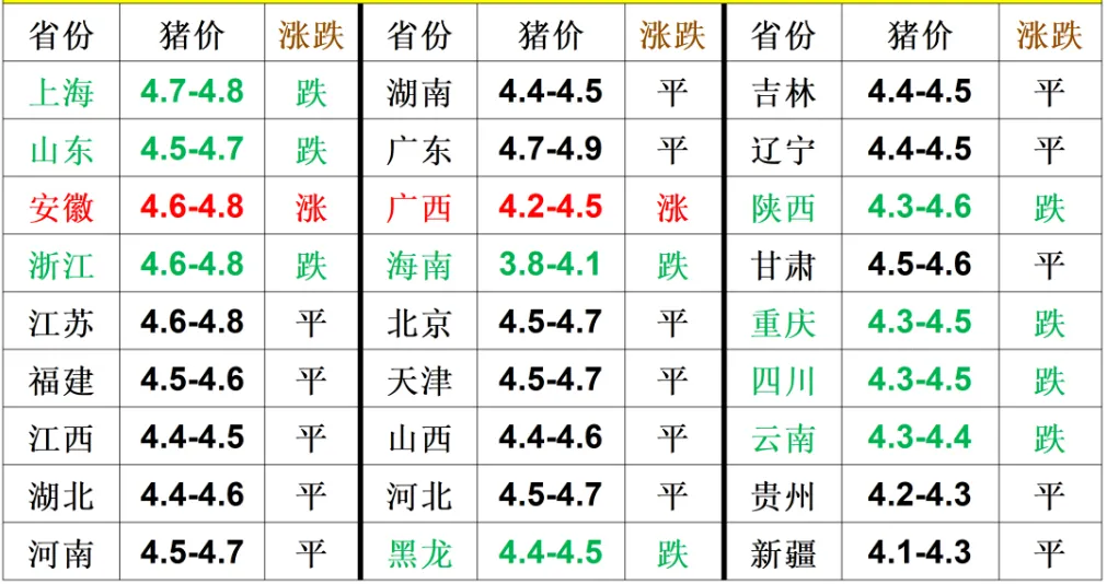 跌!2026.4.5明天天猪价|4.5猪价格今日猪价信息查询 养羊网 2026-04-04 跌!2026.4.5明天天猪价|4.5猪价格今日猪价信息查询 养羊网 2026-04-04 上一篇:三农简报|4月4日 粮价猪价+农事提醒 下一篇:【报明天猪价】2026.4.5 全国猪价! 您可能还会对下面的文章感兴趣111: 相关文章 今日猪价2026-3-19 【超前猪价】2025年3月28日-4月2日!全国猪价预测 4.4明日猪价早知道,4.4全国最新猪价信息 蛋友佳鲜鸡蛋报价2026.2.12(星期四)