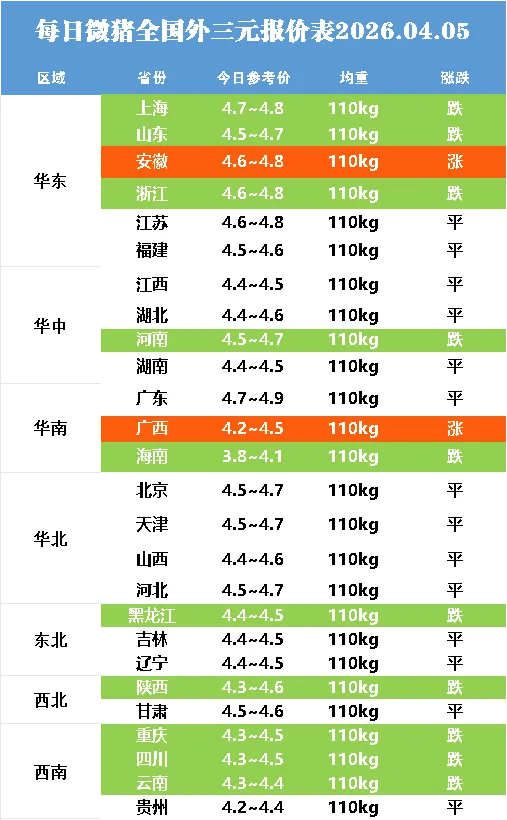 明日最新猪价2026.04.05——仔猪跌破200元关口!点击蓝字关注 猪价不错过