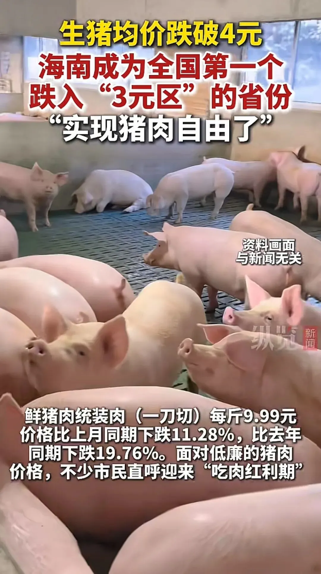 最近刷视频,刷到一条让人心里咯噔一下的消息:海南的生猪价格,已经跌破了4块钱一斤,只要3块7毛5!