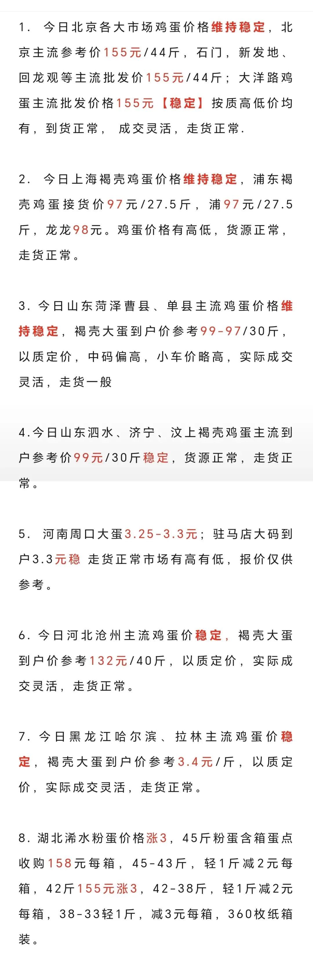 2026年四月5日各地鸡蛋价格 养羊网 2026-04-05 2026年四月5日各地鸡蛋价格 养羊网 2026-04-05 上一篇:2026年4月05日鸡蛋价格,仅供参考 下一篇:【猪价】2026.04.05福建各地区每日最新猪价 您可能还会对下面的文章感兴趣111: 相关文章 Safeway $40/18个鸡蛋 跌:3月31日广西鸡蛋价格参考 近期价格更新!!! 2025年4月13日全国各地生猪价格信息
