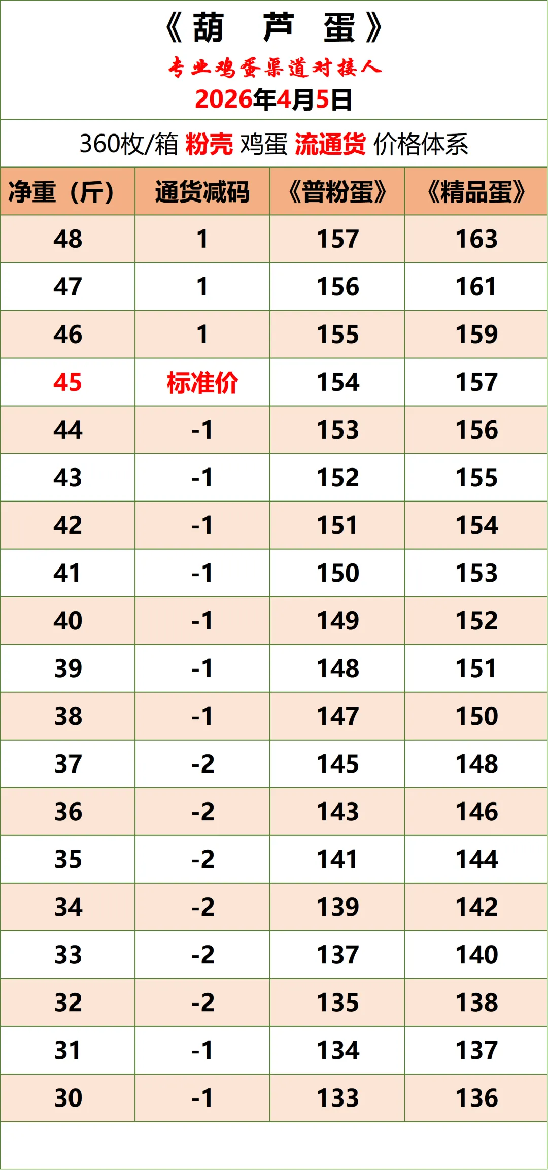 2026年4月5日《葫芦蛋》鸡蛋价格