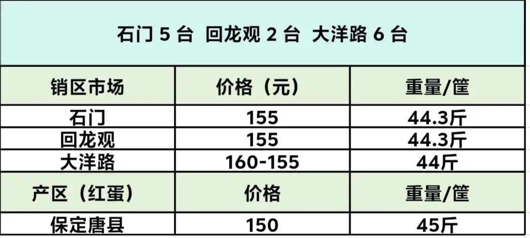 大洋路鸡蛋价格2026年 4 月 6 日报价 养羊网 2026-04-06 大洋路鸡蛋价格2026年 4 月 6 日报价大洋路 6 台,价格 160-155 元,截止晚上没有剩车,明天回 3-4 台附近。 养羊网 2026-04-06 上一篇:今日鸡蛋价格(2026.4.6) 下一篇:4月6日绿壳鸡蛋价格,粉三鸡蛋价格参考,走货一般,清库为主 您可能还会对下面的文章感兴趣111: 相关文章 2025年4月13日全国各地生猪价格信息 卖羊的第四天,一只也没卖出去 新手养牛成本测算!一次性说清楚 3月3日广西鸡蛋价格参考
