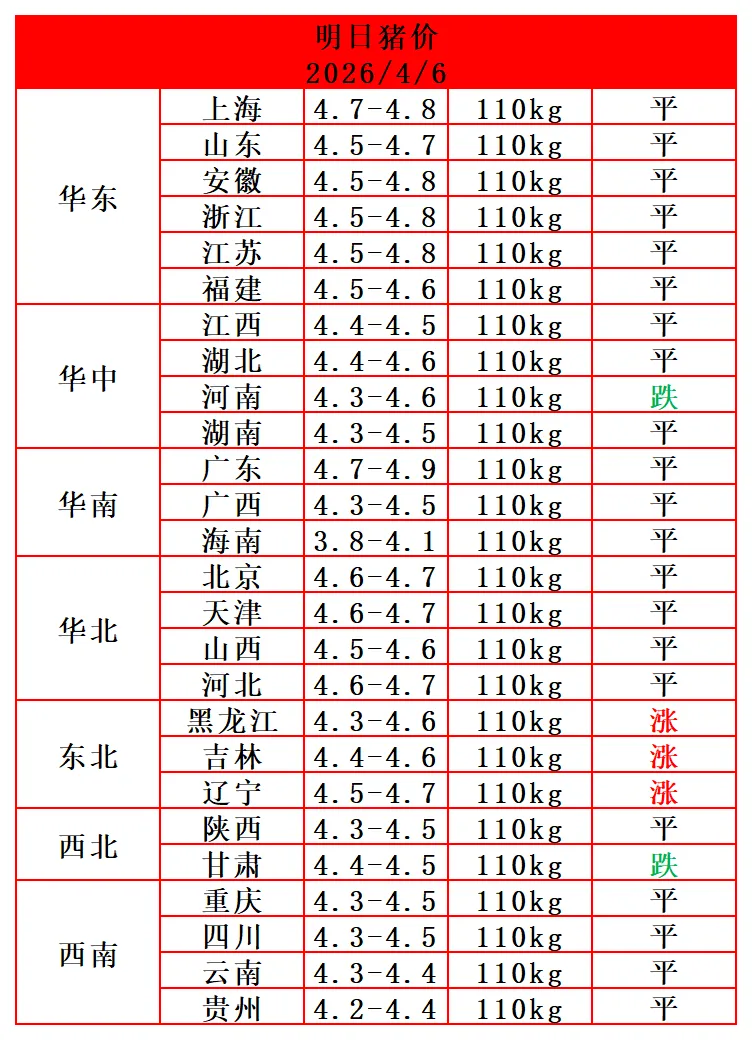 猪价又下跌!2026.04.07鼎王猪价播报早知道! 养羊网 2026-04-06 猪价又下跌!2026.04.07鼎王猪价播报早知道!立马收到明天最新猪价鼎王金猪就是长得快!订购电话:13980400130 养羊网 2026-04-06 上一篇:猪价回稳!2026年4月7日全国猪价回稳!! 下一篇:猪价跌破10元,谁将成为这轮周期倒下的第一张多米诺骨牌? 您可能还会对下面的文章感兴趣111: 相关文章 2月1日鸡蛋价格早知道 预警!猪价“磨底”不止 金铲铲每日问答! 近期价格更新!!!