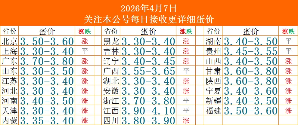 下图为4月7日全国鸡蛋价格表?仅供参考!