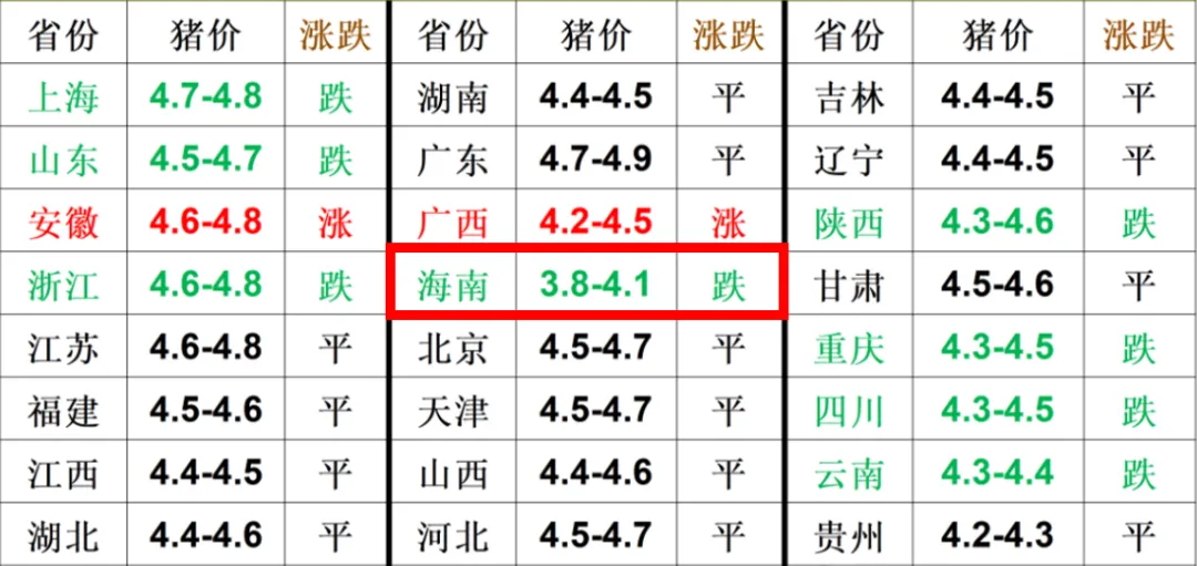 4 月 4 日,全国外三元生猪均价跌至 4.52 元 / 斤,创下 2018 年以来近 8 年的历史低位。而海南市场更是成为全国 “洼地”,部分收购点报价低至 3.8 元 / 斤,较 2 月份高点 5.4-5.7 元 / 斤大幅回落,跌幅超过 30%。
