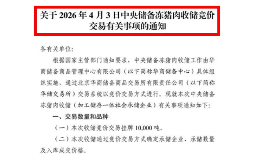 面对猪价持续暴跌,国家发展改革委已启动两轮中央冻猪肉储备收储,4 月 3 日,今年第二批中央冻猪肉储备收储工作启动,交易量为 1 万吨,旨在稳定市场预期。同时,行业协会也呼吁养殖户理性出栏,避免恐慌性抛售,缓解市场压力。