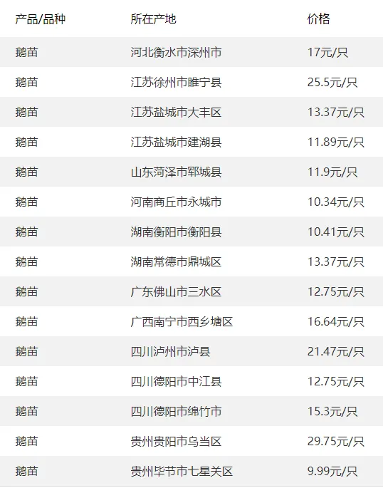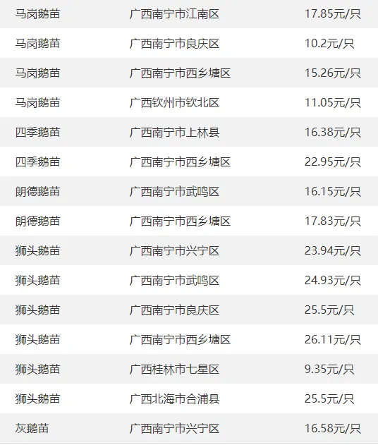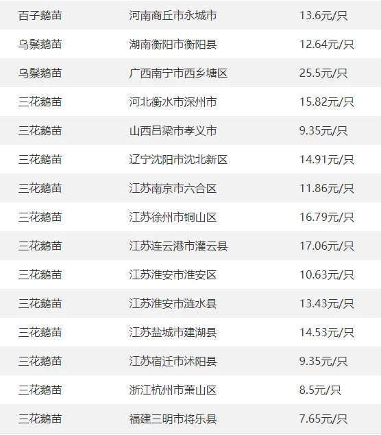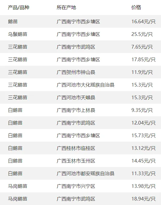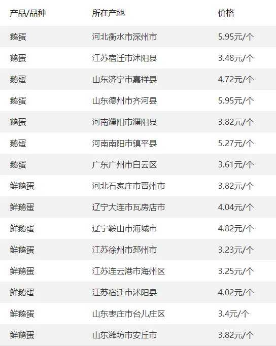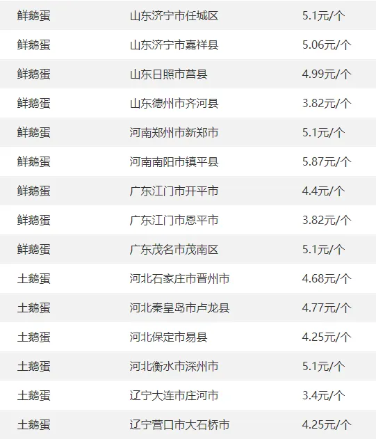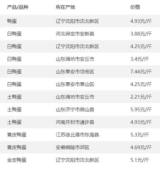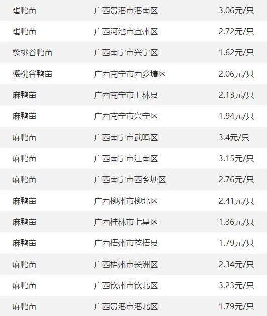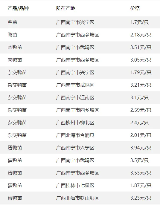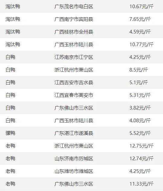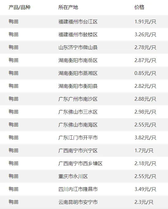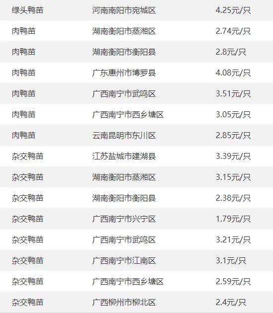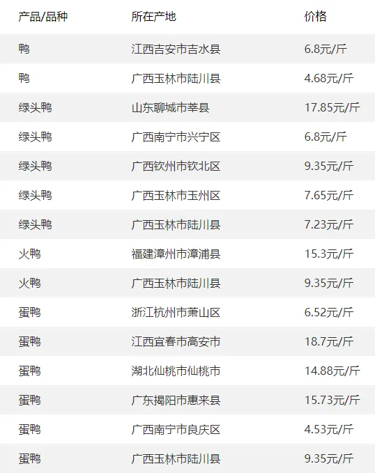 活鸭、鸭苗、鸭蛋、鹅苗等今日报价参考