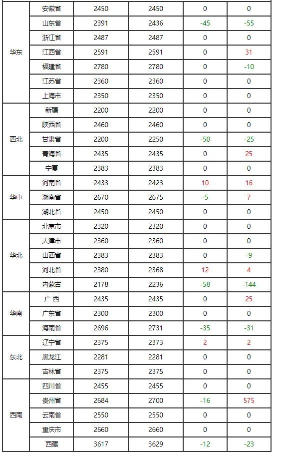 1、全国外三元均价10.16元/公斤,华北、东北止跌反弹,南方偏弱,养殖户头均亏损400-500元。