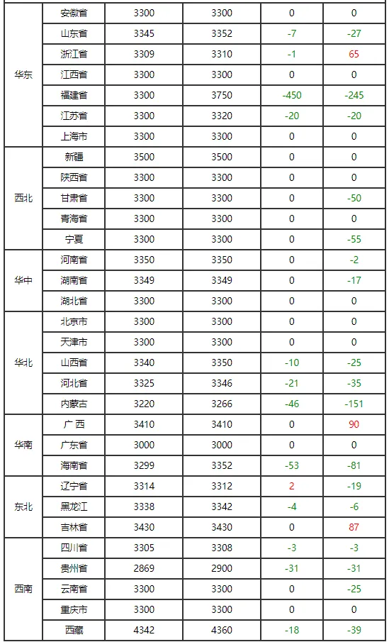 4、现货3150-3250元/吨,期货2859元/吨,弱势震荡,需求低迷。