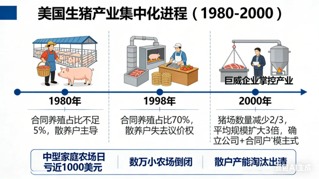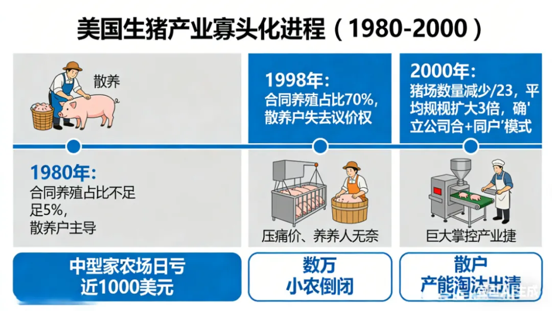 美国生猪价格的崩盘,1998年就出现了,崩盘之后的结果,就是寡头化,我们接着来看看。