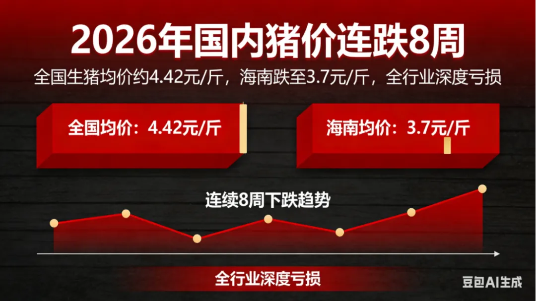 生猪均价跌破4.5元/斤,海南猪价更是探至3.7元/斤,连续8周的下跌让整个行业陷入深度亏损。这场价格寒冬背后,一场养殖业的寡头化变革正在悄然加速。