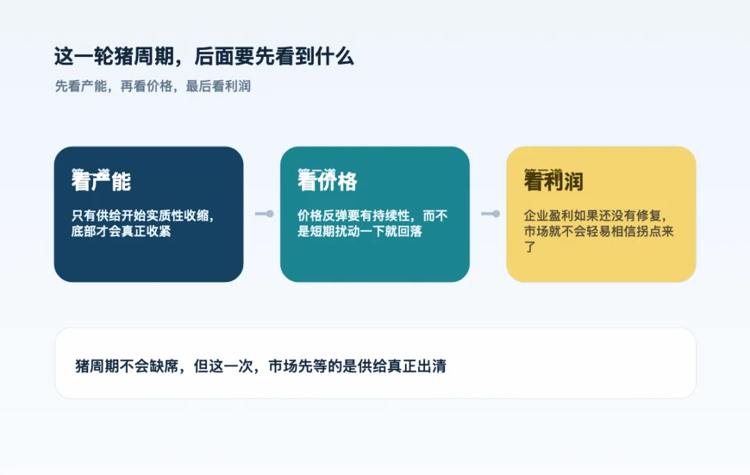 第三,市场现在对猪周期的要求也更高了。以前只要价格回升,资金就愿意先抢跑;现在大家更想看到的是,能繁母猪、出栏节奏、企业利润几个指标一起改善,而不是只靠一个价格反弹就下结论。