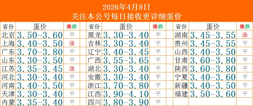下图为4月8日全国鸡蛋价格表?仅供参考!