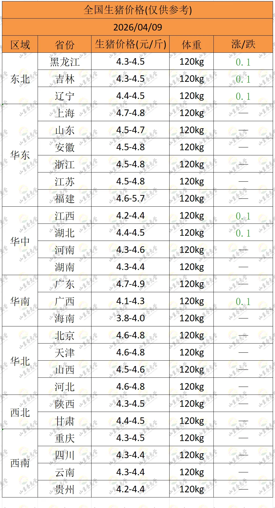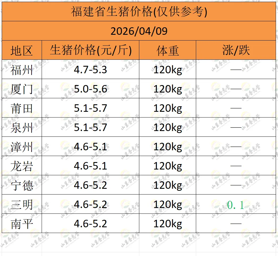 全国各地明日猪价(2026.04.09)-山里香惠营