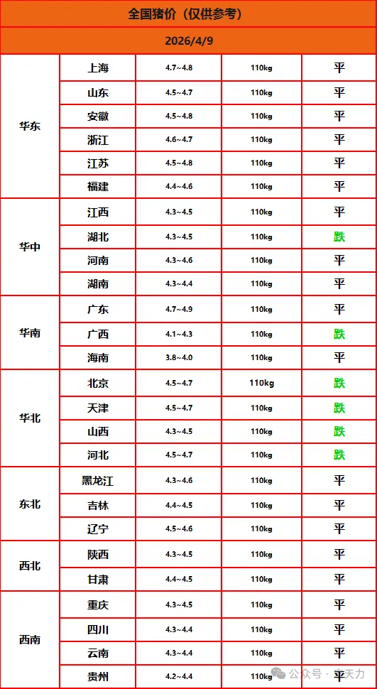 猪价一览|2026年4月9日 (明日猪价早知道)