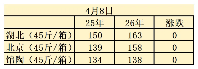 2026年4月8日鸡蛋价格分析 养羊网 2026-04-08 2026年4月8日鸡蛋价格分析备注:年平均价格是按照阳历日期计算。 养羊网 2026-04-08 上一篇:4月8日 今日猪价 下一篇:2026 . 04.09 猪价 您可能还会对下面的文章感兴趣111: 相关文章 最新猪价 | 4月2日猪价预测:下行 今日猪价 | 2026.2.4 猪价止涨转跌,涨价只是“昙花一现”? 近期价格更新!!! 2026年1月26日 全国鸡蛋价格早知道