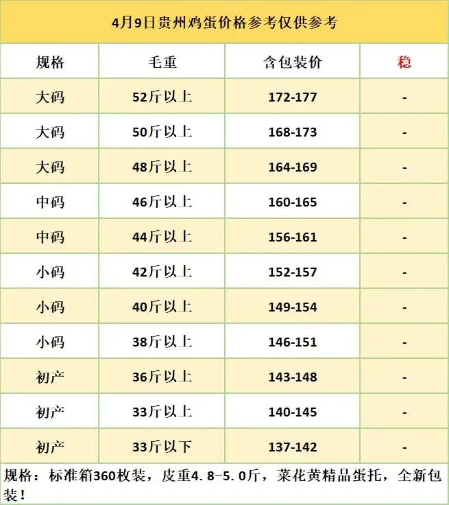 4月9日贵州鸡蛋价格参考