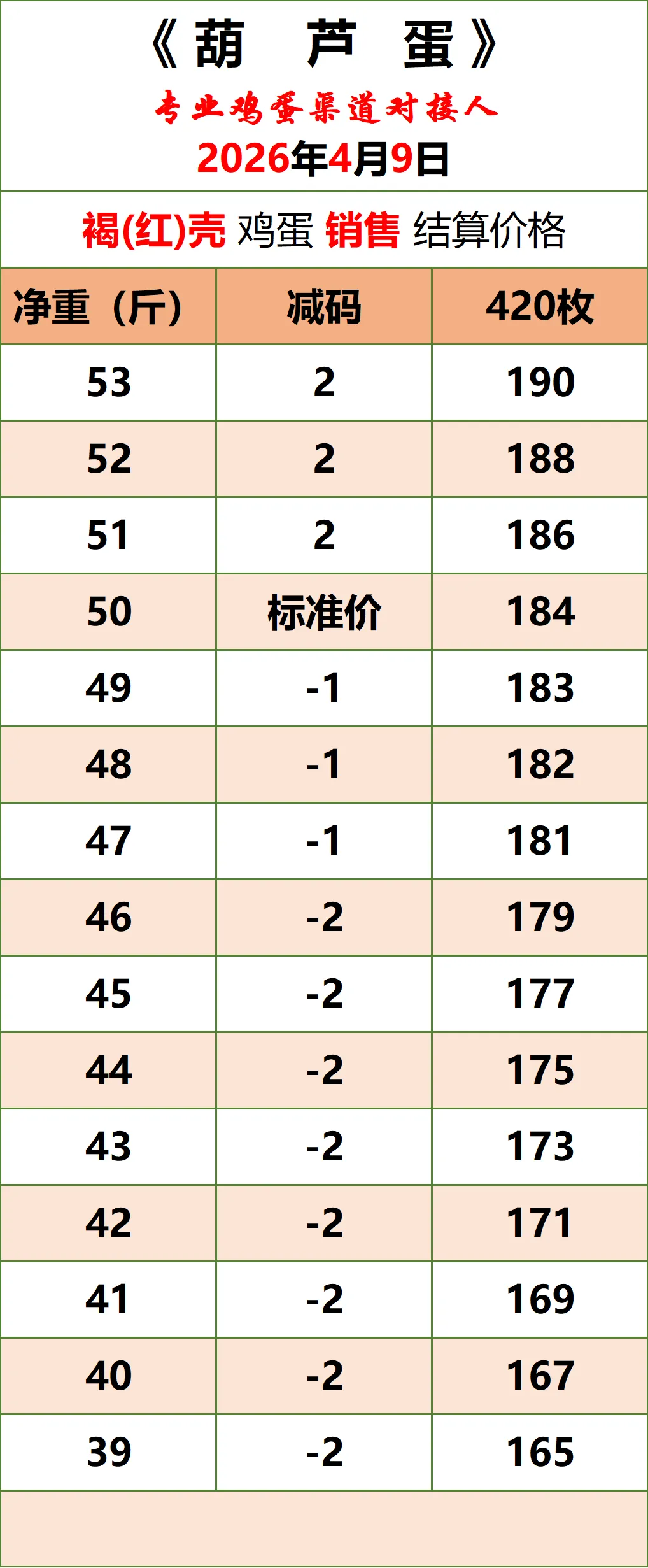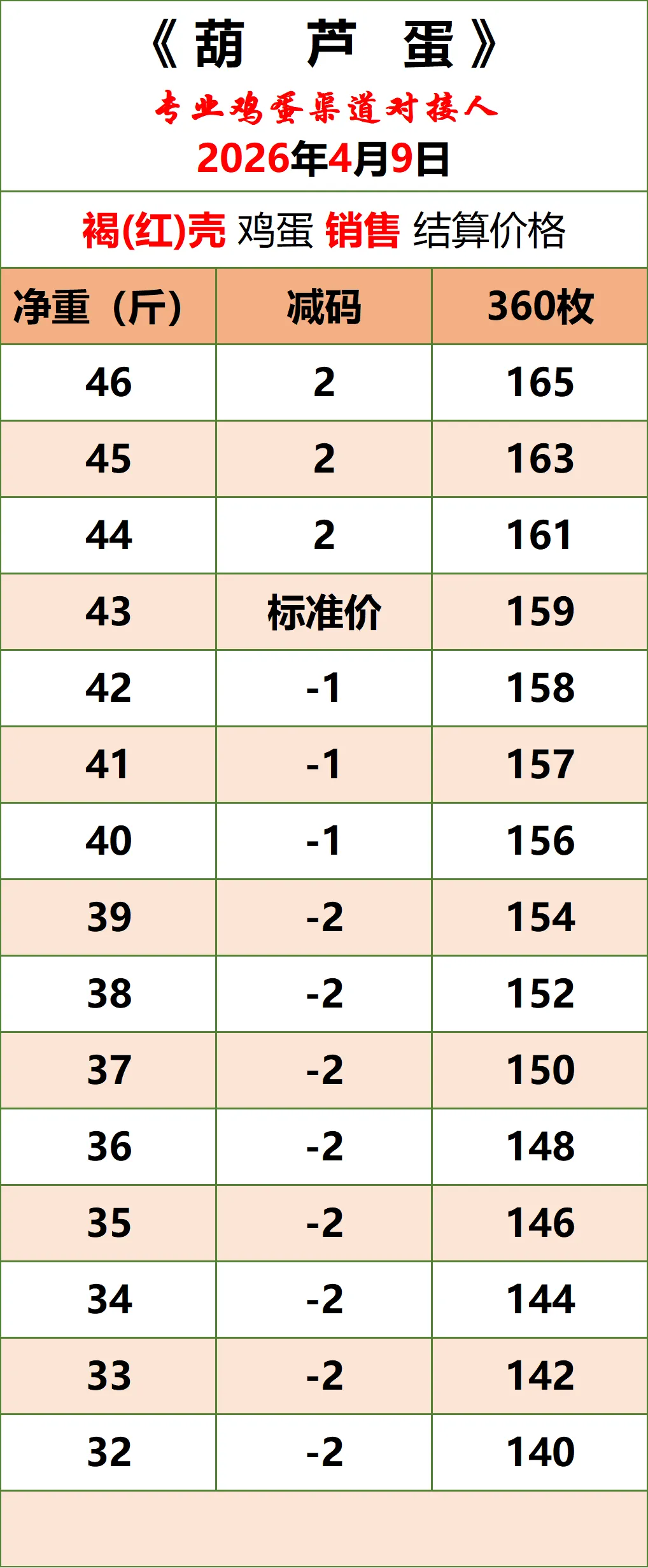 2026年4月9日《葫芦蛋》鸡蛋价格