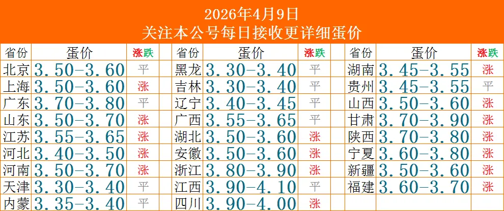 下图为4月9日全国鸡蛋价格表?仅供参考!