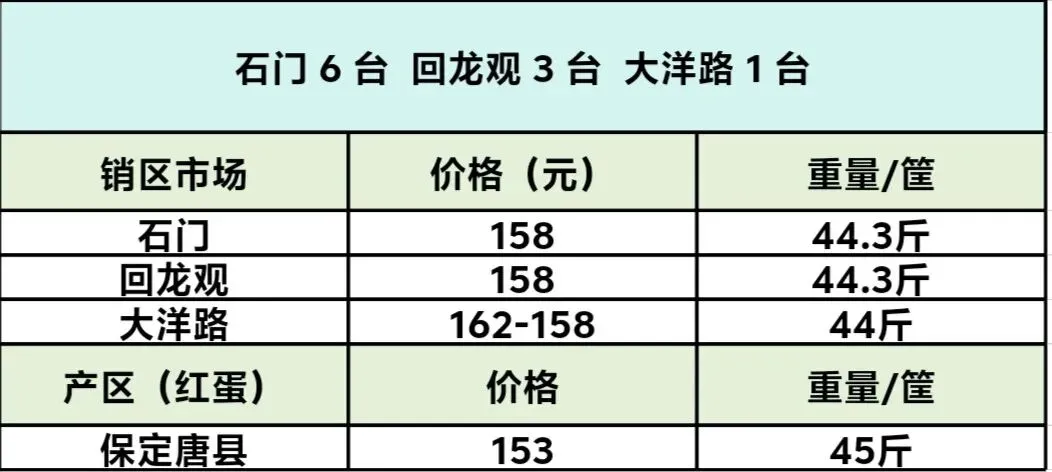 大洋路鸡蛋价格2026年 4 月 9 日报价 养羊网 2026-04-09 大洋路鸡蛋价格2026年 4 月 9 日报价大洋路到 1 台,价格 162-158 元,车少,明天回车继续少预计 2 台附近。 养羊网 2026-04-09 上一篇:《湖北荆门》褐壳鸡蛋价格2026年4月9日 下一篇:2026年4月9日鸡蛋、淘汰鸡价格行情 您可能还会对下面的文章感兴趣111: 相关文章 贵州农千鸡蛋价格:2月12日!报价模式调整! 近期价格更新!!! 1月31日广西鸡蛋价格参考,跌 这个价格贵吗?