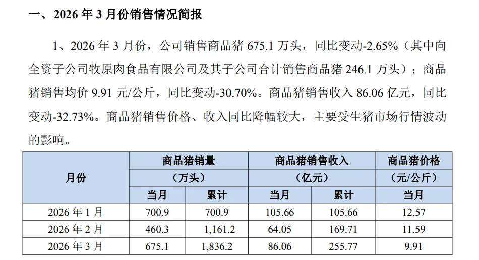 昨天牧原股份也公布了3月份的销售简报,售价9.91元/公斤,按照成本11.9元计算,预计亏损17亿。
