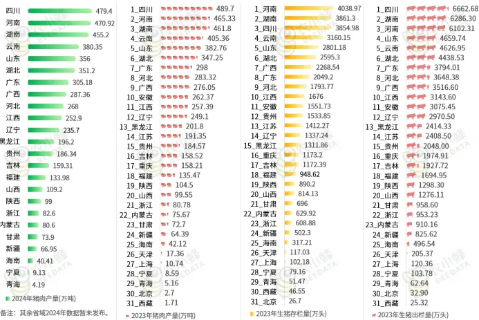 报告明确指出,全国肉类生产高度集中在山东、四川、河南、湖南、云南和广东。其中: