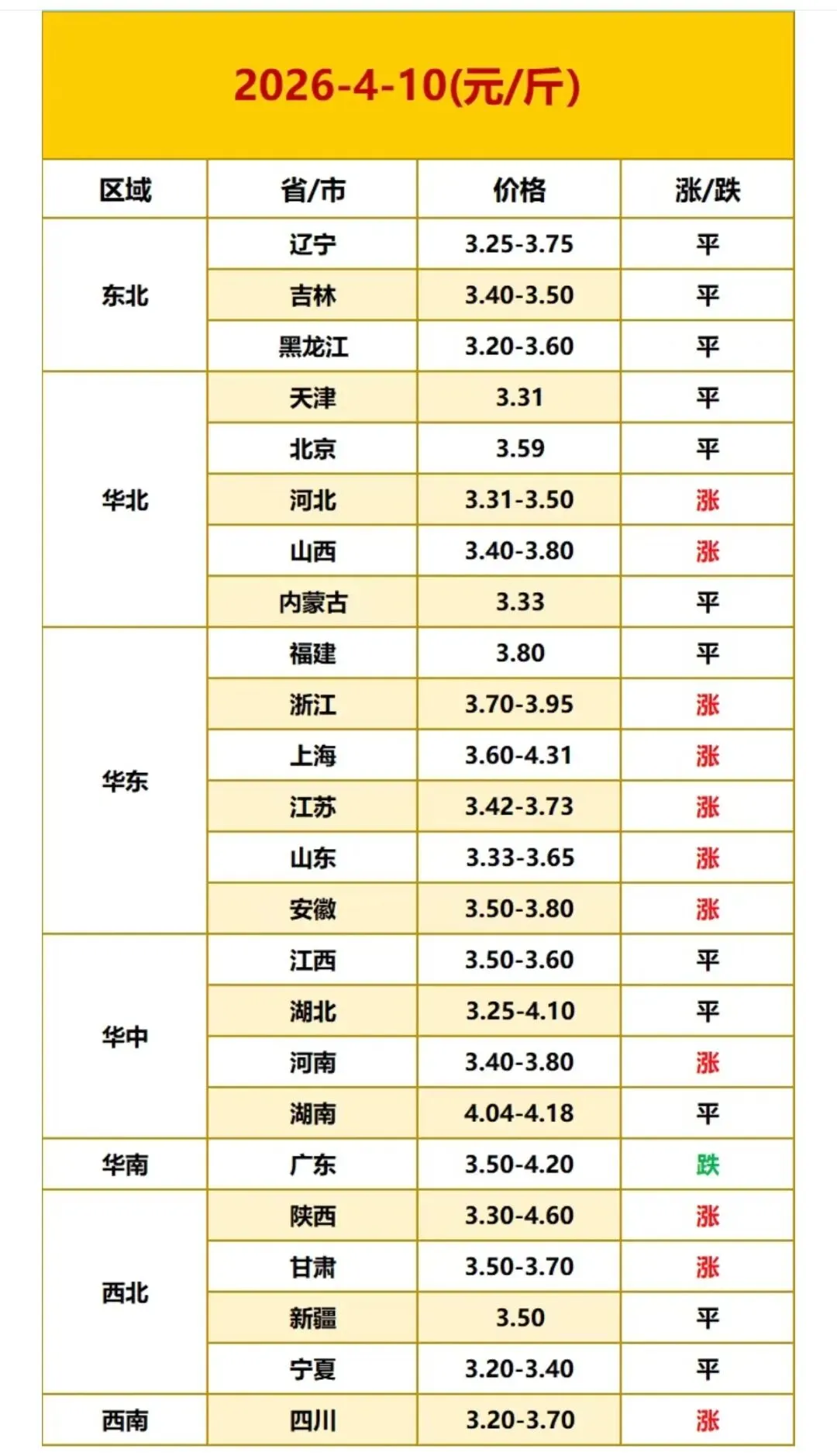2026年4月10日全国鸡蛋价格最新走势 ? ? ? 全国鸡蛋最新价格参考:
