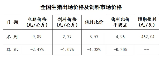 【4月第1周】生猪、饲料市场价格:猪价再度普跌,头均亏损突破460元!