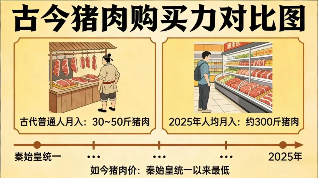 也就是说,现在的猪肉价格,其实是自秦始皇统一六国以来的最低水平。