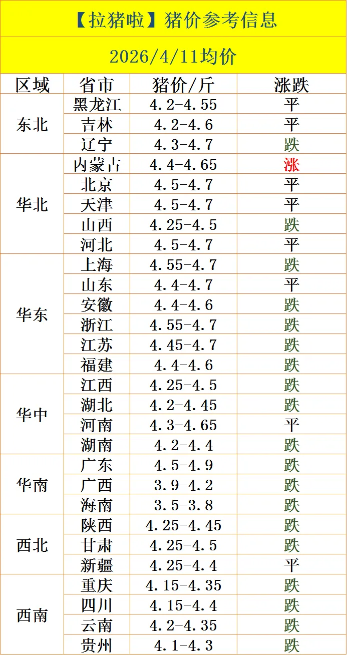 【拉猪啦】4.11-猪价行情与买卖猪信息!(多地继续下跌!深陷泥沼!)