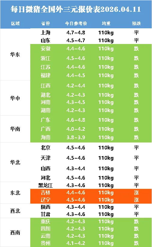 明日最新猪价2026.04.11点击蓝字关注 猪价不错过