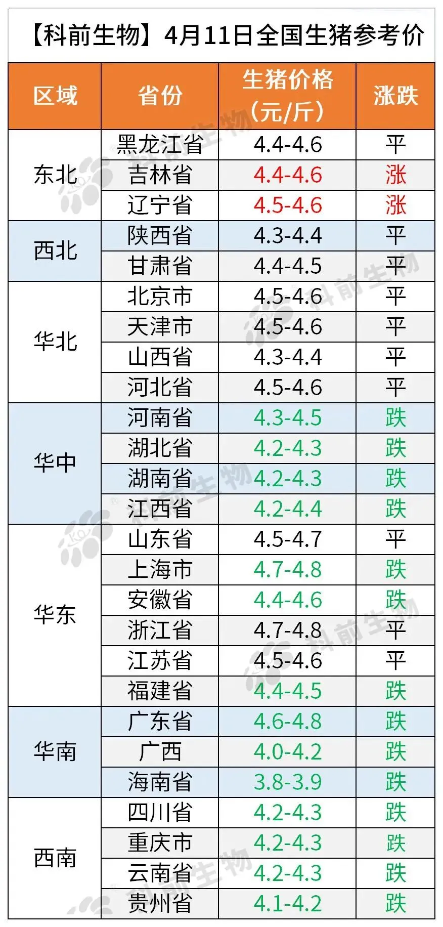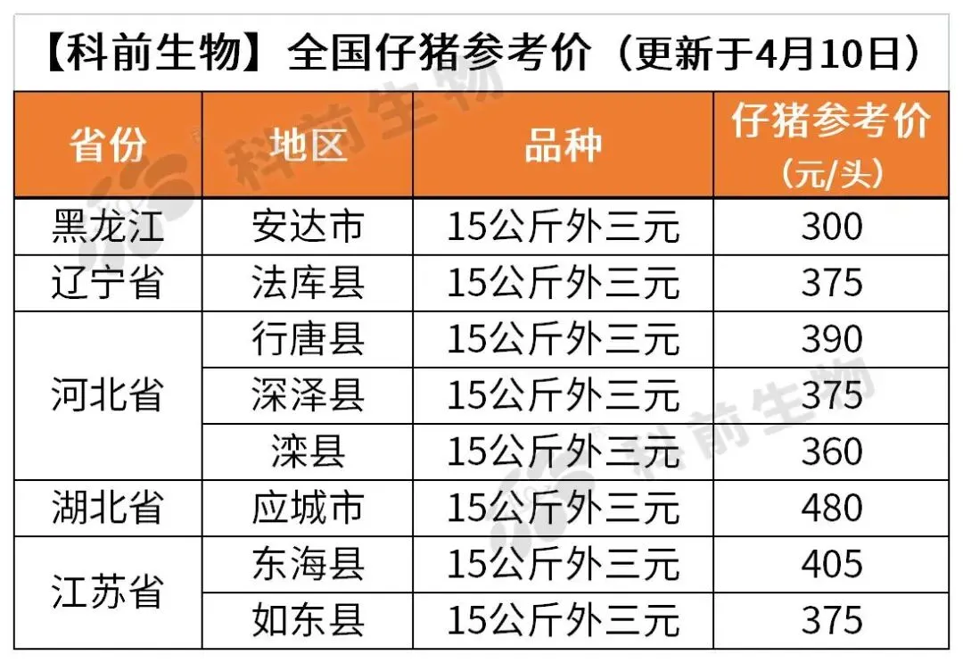 【科前生物】4月11日全国猪价参考