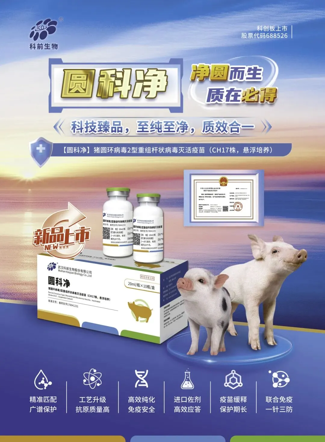 武汉科前生物股份有限公司成立于2001年,专注于兽用生物制品研发、生产、销售及动物防疫技术服务,是国家发改委首批授予的“国家高新技术产业化示范工程”重点高新技术企业,是上海证券交易所科创板上市企业(股票代码:688526)。