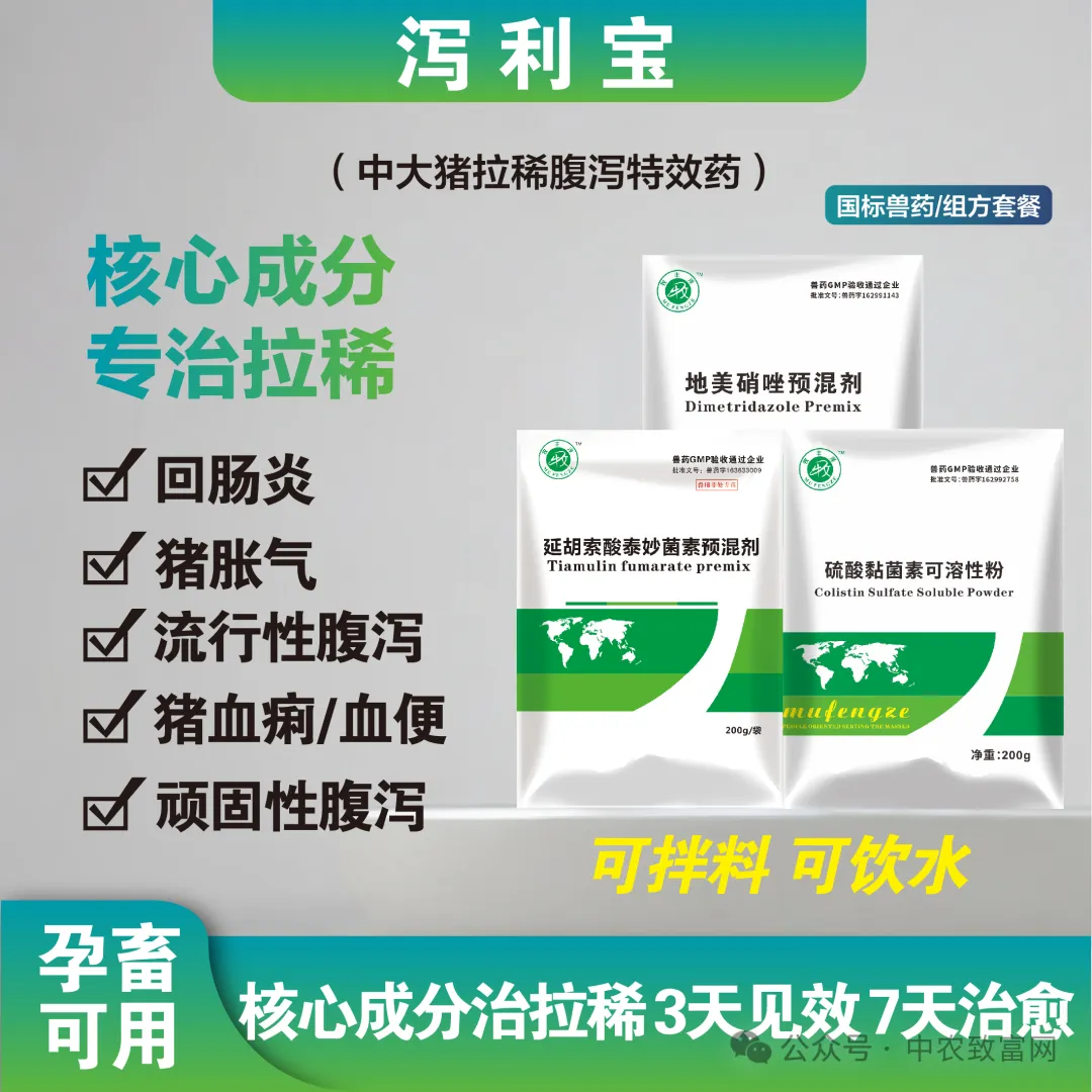 全能组方,快速止痢,改善机体微循环,可减少体液渗出,有效防止脱水,使病猪快速恢复正常代谢,快速提高病猪的治愈率。