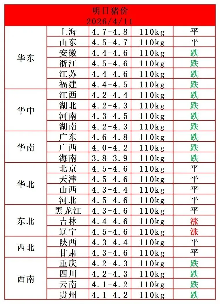 2026年4月11日-全国猪价(部分上涨)